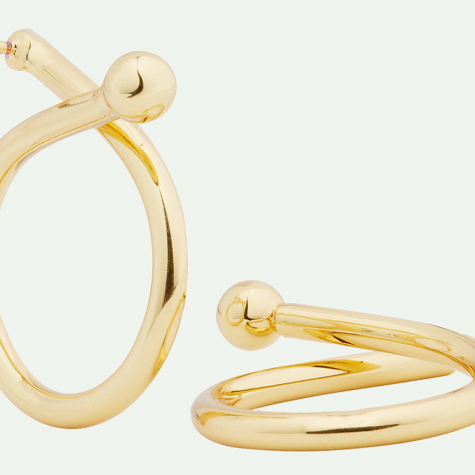 In this new collection of charms, N2 by Les Néréides has reinvented its pair of twisted hoop earrings as criss-cross hoops. These gold-plated earrings have a simple but unique design that allows you to wear the charms facing forward instead of sideways. The function remains the same, you can wear these earrings alone as hoop earrings. Or you can use them as a support to hang the N2 charms and create your own combinations.